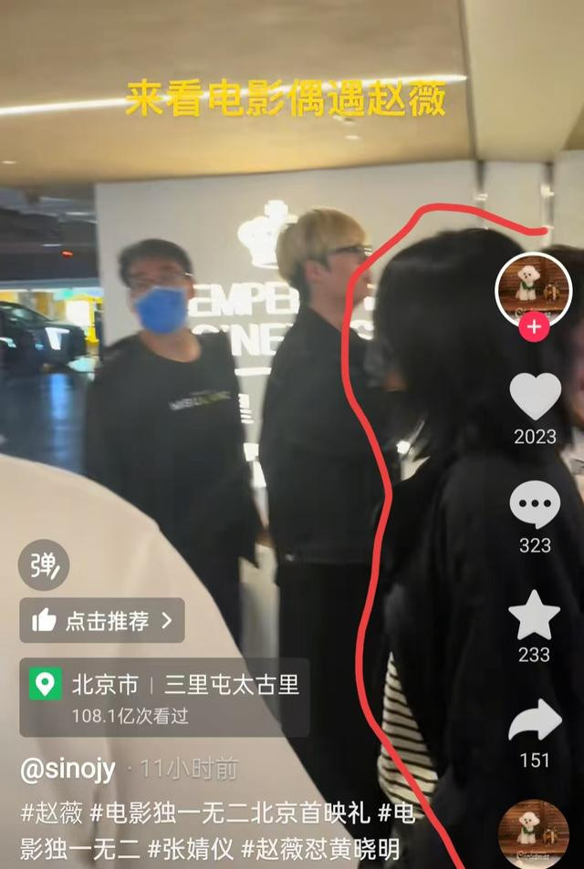 有细心的网友在去电影院的时候,偶遇了沉寂多年的赵薇,视频中她身着黑色上衣,戴着口罩,手拿帽子,看上去非常低调。