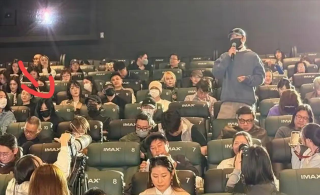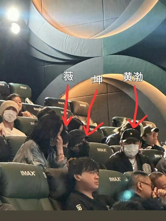 在首映礼现场,果然发现了她的身影,在电影院里面也戴着口罩,旁边坐着老朋友陈坤,和黄渤,大家都精心乔装,低调看电影。